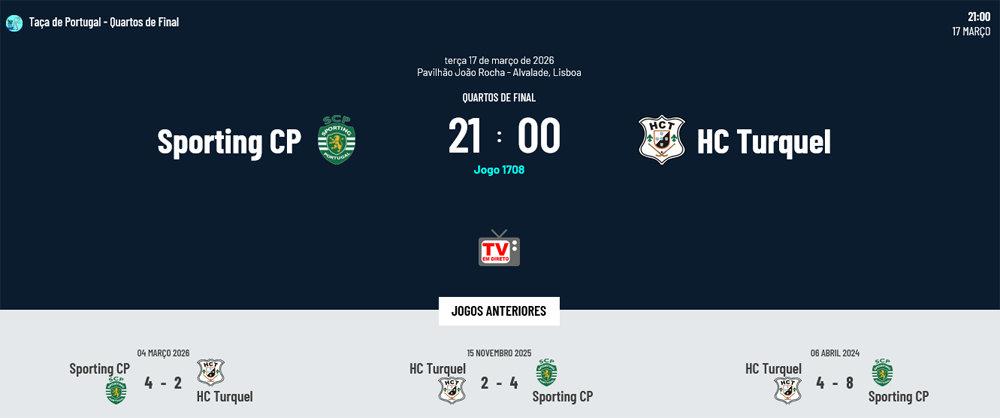 Hoje realiza-se o Sporting-Turquel que apurará o terceiro semi-finalista: