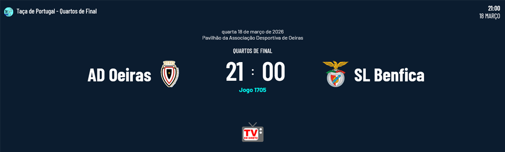 Amanhã realizar-se-á o Oeiras-Benfica que determinará a quarta equipa a participar na Final Four que se realiza a 25 e 26 de Abril:
