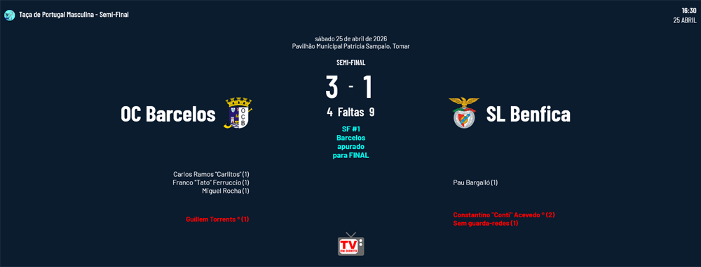 Nas Semi-Finais os jogos foram os seguintes: