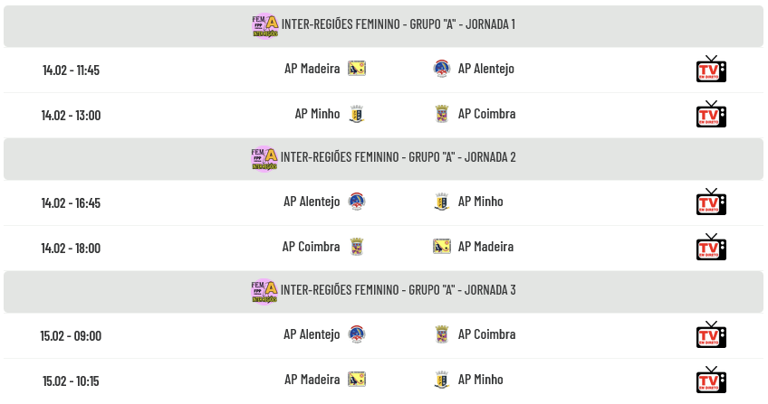 Começa hoje no Pavilhão Multiusos de Paredes o Torneio Inter-Regiões Feminino 2026 com a presença de oito seleções… Selecione abaixo o logótipo de cada seleção para conhecer os golos marcados e sofridos por cada uma delas, a composição dos plantéis, a ficha individual de cada jogadora e o clube que representa, trabalho fantástico do incansável Ricardo Paulino: