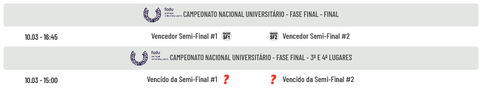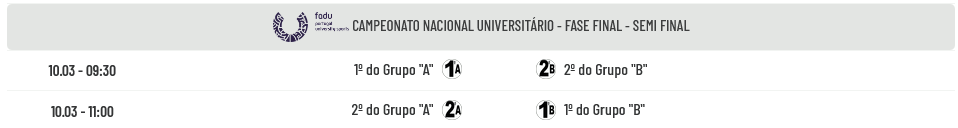 No dia 10 pela manhã disputam-se os jogos das Semi-Finais com o seguinte agendamento:
