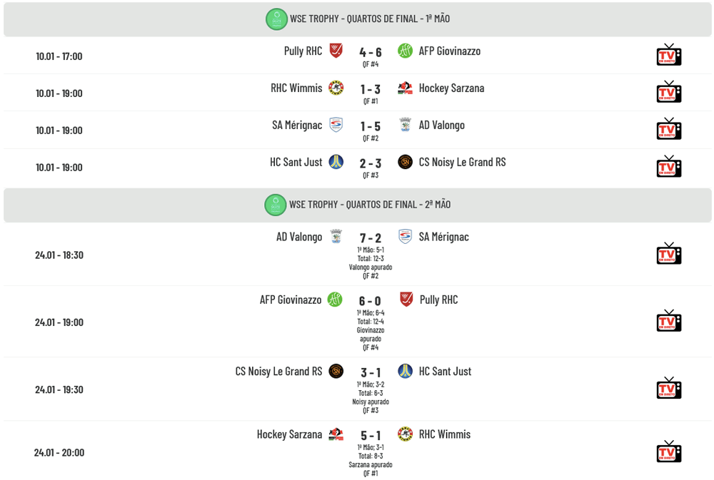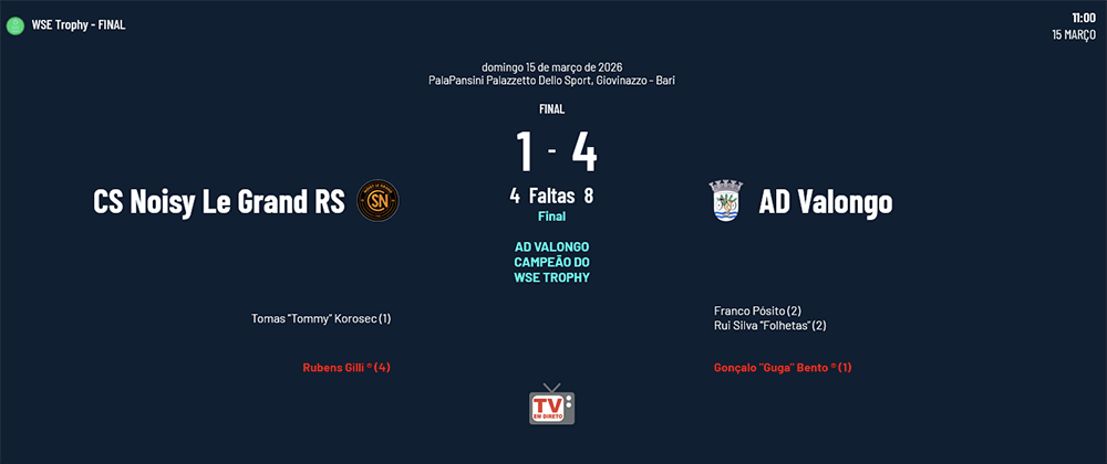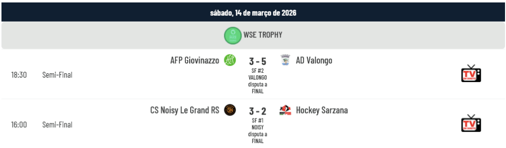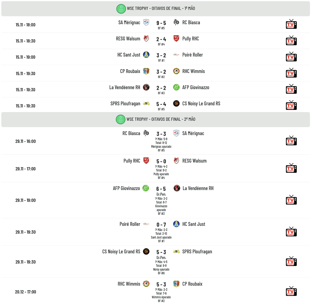 Consulte agora todos os resultados dos restantes jogos do WSE Trophy: