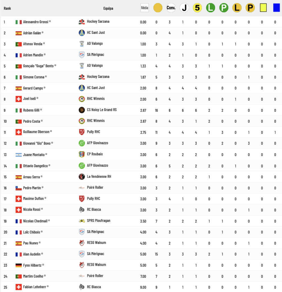 Afonso Venda é um dos guarda-redes que apresentam média de 1 golo sofrido por jogo (3 golos em 3 jogos) e “Guga” Bento aparece com média de 1,33 golos por jogo (4 golos em 3 jogos). Conheça a lista completa a partir da ligação apensa à tabela abaixo: