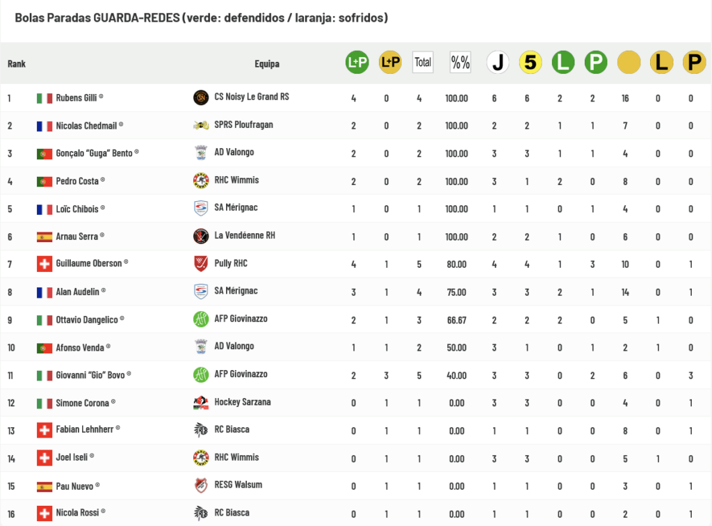 João Maló marcou a única Grande Penalidade que bateu e Franco Pósito marcou duas Grandes Penalidades e falhou uma, o que os coloca no Top4 das lista de Bolas Paradas atacantes foram batidos nas Bolas Paradas: