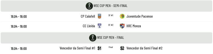 Desta forma, ficam apurados Juventude Pacense, Calafell, Lleida e Monza para a Final Four que se realiza a 18 e 19 de abril com a seguinte agenda: