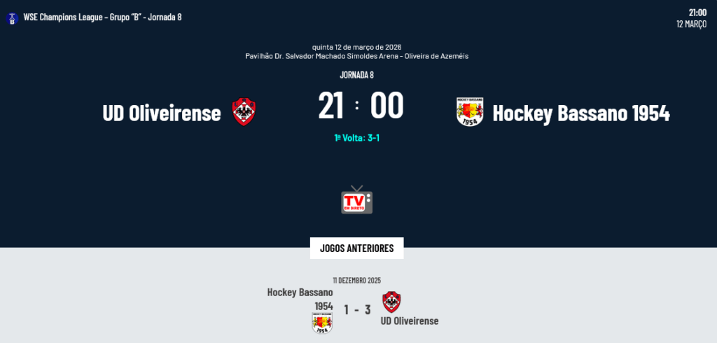 A Oliveirense recebe o Bassano e tem mesmo de vencer se quiser deixar definitivamente para “trás” o adversário de hoje mas, ainda mais importante, aproximar-se de Barcelos, Sporting e Liceo… Uma vitória hoje poderá não igualar os adversários que a precedem na tabela da Classificação Geral mas permitirá manter a esperança de qualificação, ao contrário de uma derrota frente a este Bassano que quase colocaria a Oliveirense fora dos Quartos de Final… Em suma, jogo hiper importante para a UD Oliveirense.