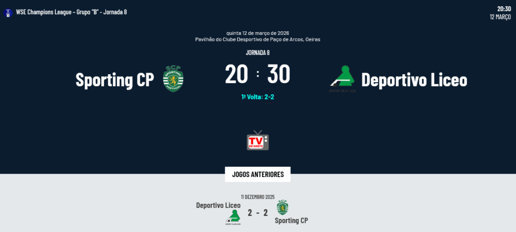 O Sporting está numa posição muito semelhante à do Barcelos, com os mesmos 10 pontos, e terá na 10ª Jornada o tira-teimas com os barcelenses, pelo que hoje tem mesmo de vencer o Liceo se quer subir na tabela classificativa e reduzir as hipóteses da equipa espanhola. No jogo da 1ª Volta empataram a 2 golos e a vitória de hoje daria aos “leões” vantagem no confronto direto com liceistas, sempre importante em caso de empate final.