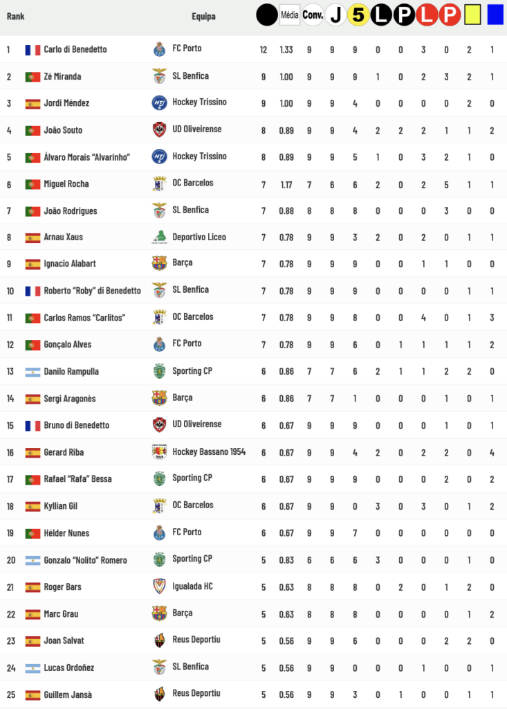 Carlo Di Benedetto continua líder isolado da lista de Goleadores da WSE Champions League (com 12 golos marcados), agora perseguido por Zé Miranda e Jordi Méndez (com 9 golos) e um par português, João Souto e “Alvarinho”, com 8 golos marcados…