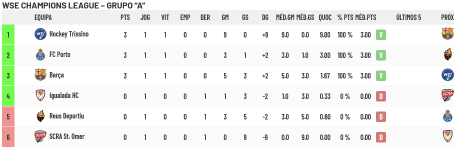 WSE Champions League começou ontem com vitória do Porto em Igualada... Hoje são os restantes jogos