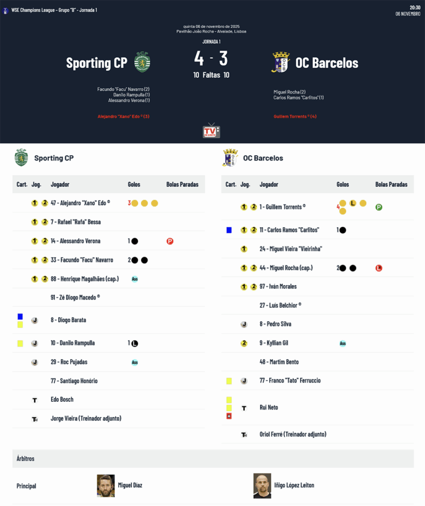 Sporting e Benfica vencem na 1ª Jornada da WSE Champions League