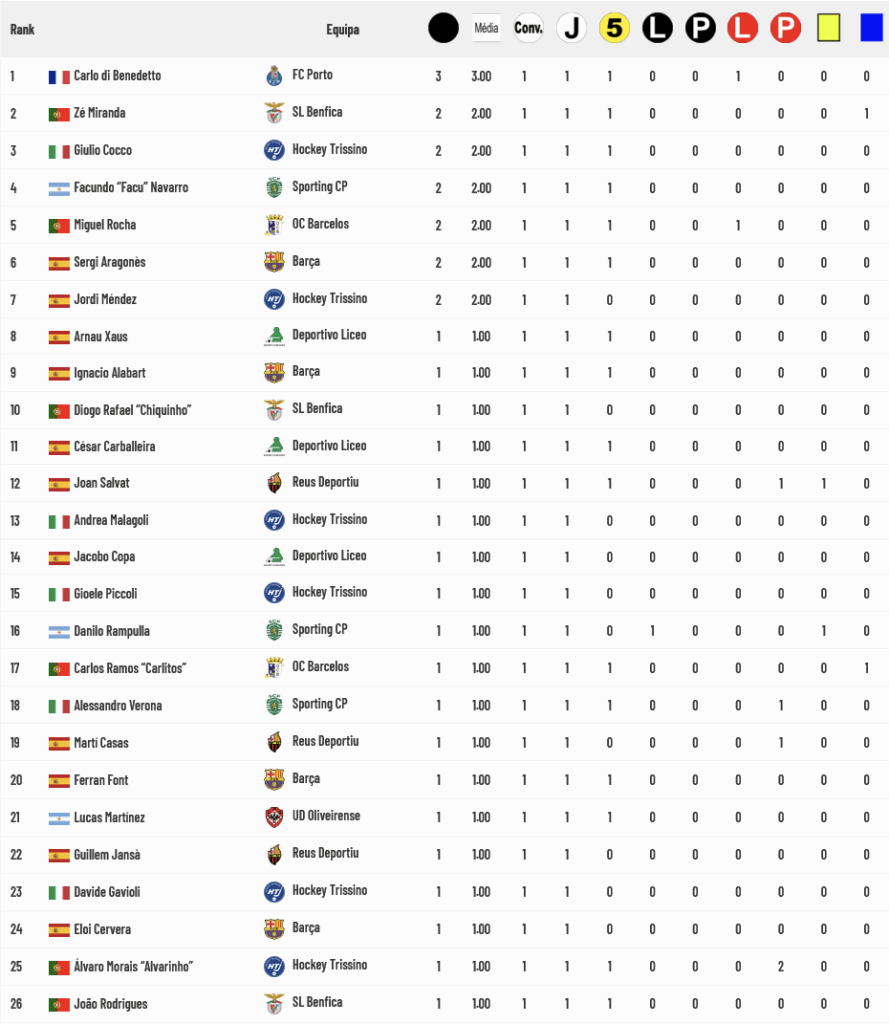 Carlo Di Benedetto comanda a lista dos goleadores perseguido por seis jogadores com 1 golo marcado a menos, entre os quais Zé Miranda e Miguel Rocha: