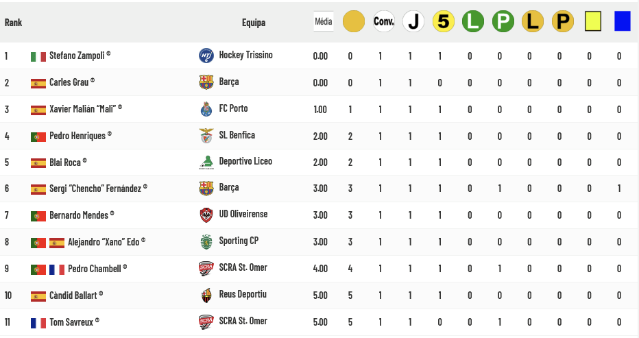 Stefano Zampoli e Carles Grau (este jogou somente 5 minutos) comandam a lista dos guarda-redes menos batidos sem sofrer golos na 1ª Jornada perseguidos por “Xavi” Malián com 1 golo sofrido e o duo Pedro Henriques e Blai Roca com 2 golos sofridos: