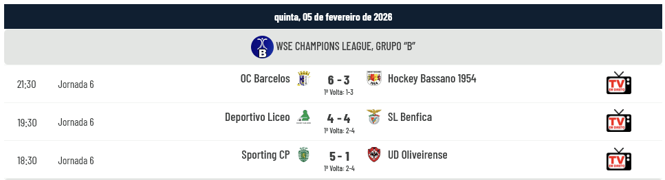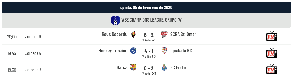 A WSE Champions League prosseguiu ontem com a 6ª jornada (primeira da 2ª Volta) com resultados que voltam a colocar o Porto na liderança do Grupo “A” e solidificam o primeiro lugar do Benfica no Grupo “B”