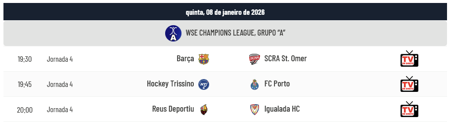 Realizam-se hoje os jogos da 4ª jornada da Fase de Grupos da WSE Champions League. Vejamos quais os que temos de seguir: