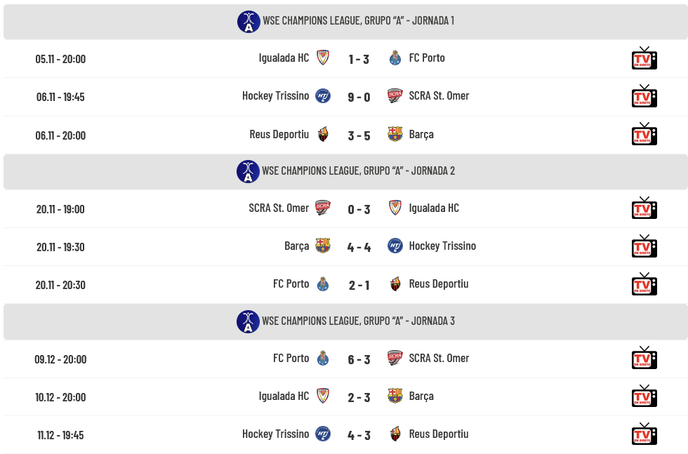 WSE Champions League começou ontem com vitória do Porto em Igualada... Hoje são os restantes jogos
