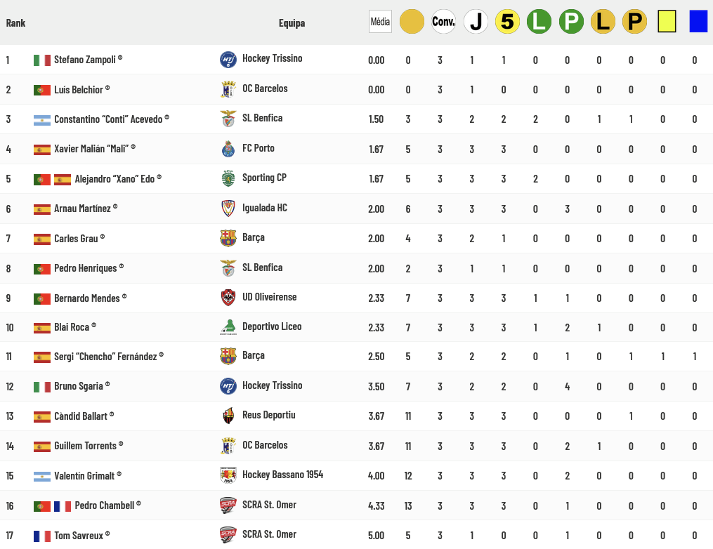 Stefano Zampoli e Luís Belchior ainda não sofreram golos nas 3 Jornadas já decorridas mas ambos participaram em somente 1 jogo. “Conti” Acevedo, “Xavi” Malián e “Xano” Edo são os outros guarda-redes com média de golos sofridos inferior a 2 por jogo: